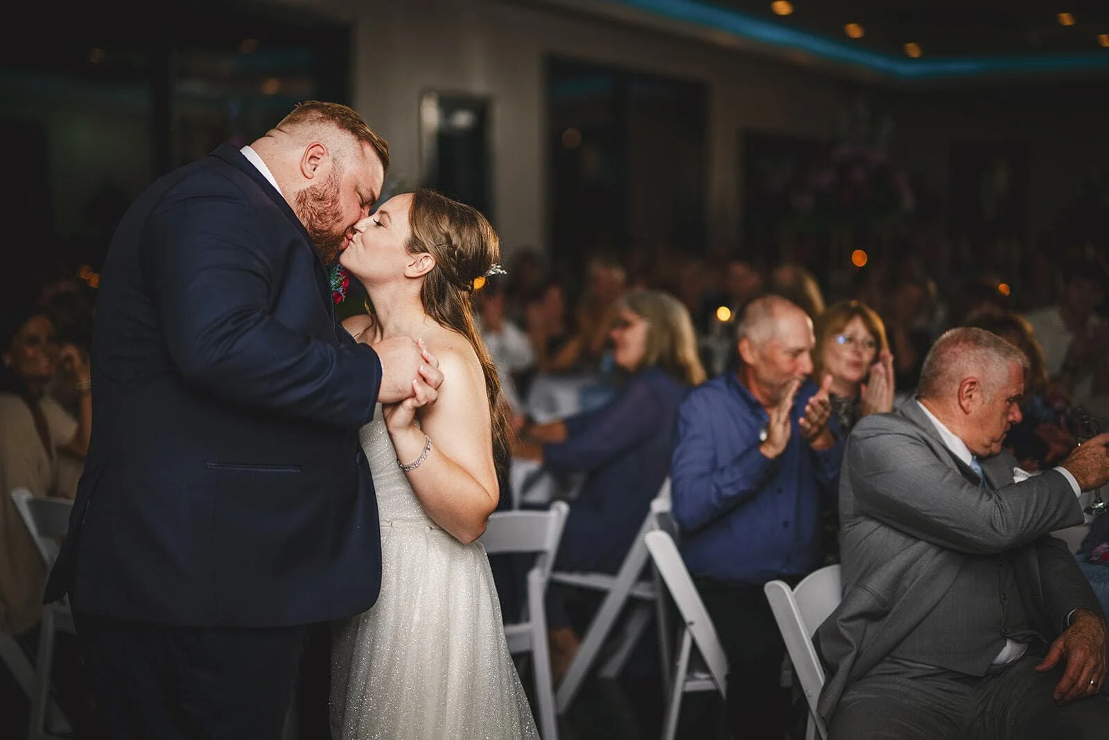 Sunset Bluffs’ main hall features 12-foot ceilings and is truly a blank canvas for your day. Massive windows pull the lake and bluffs right into the room, so you never lose that connection to why you booked this venue in the first place! With space for up to 300 guests, it’s built for dinner, dancing, and celebrating big. From a photographer’s angle, the acoustics and layout make it easy to capture crisp toasts, lively dance floors, and those in-between moments without distraction.
