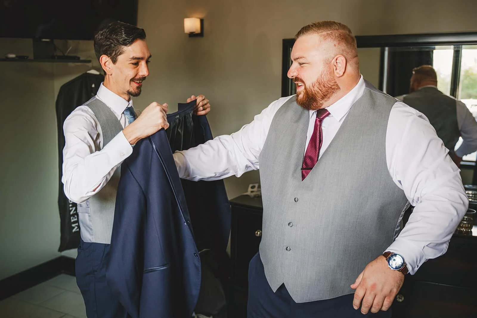 Sunset Bluffs also gives the groom and his crew their own dedicated prep space. It’s outfitted for comfort and privacy, complete with a pool table and seating that overlook's Sunset Bluff's beachfront area. The groom's folks can hang out, relax, and get ready without any distractions. Just like the bridal suite, the groom’s area benefits from good light and spacious design, making it easy to capture everything separately from your partner so as to not spoil your first looks! Having these two separate spaces ensures both partners can prepare in style while giving the photographer plenty of variety to tell the full story of the day.